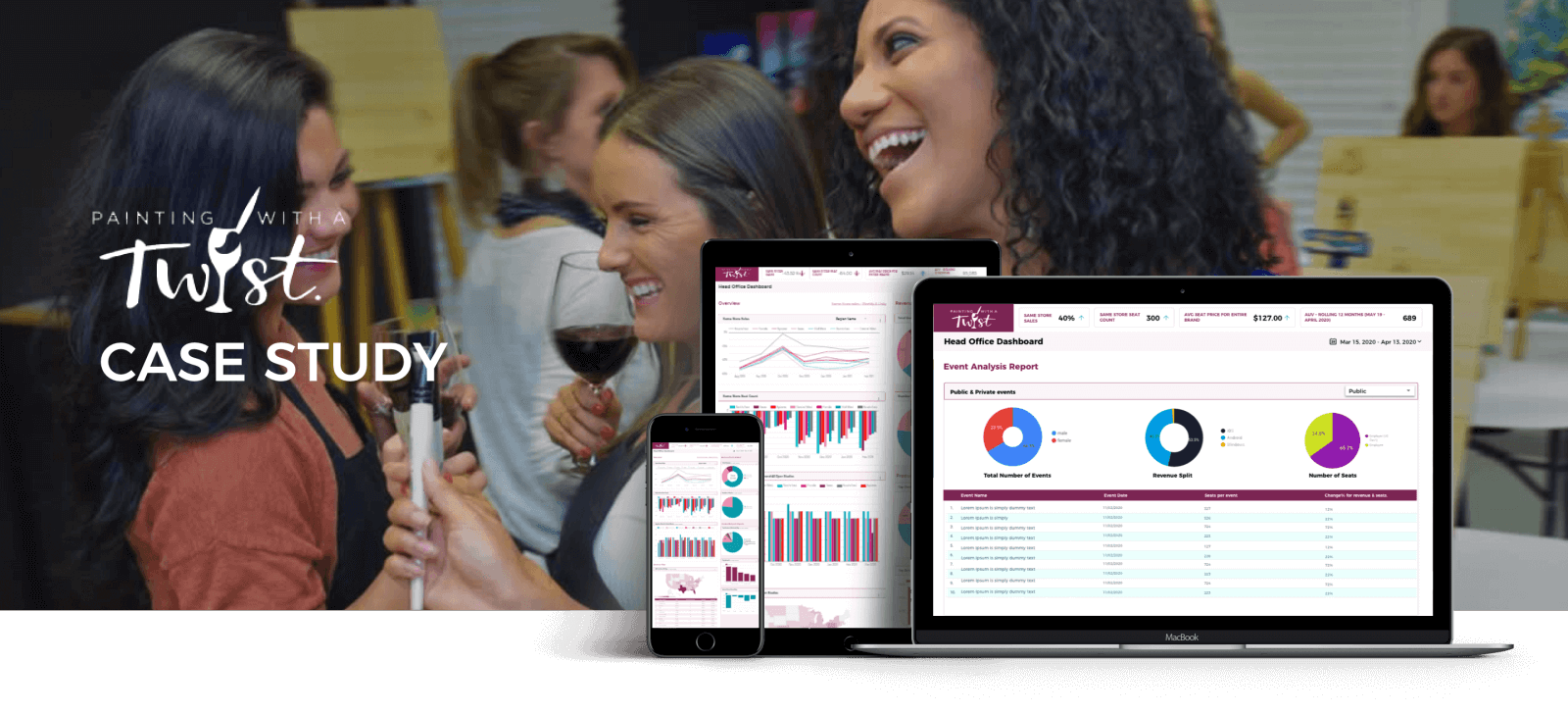 In order to continue to serve their customers and franchisees, Painting with a Twist knew they needed to update both their customer-facing site and franchise administration portal. Echidna reimagined their site experience to a simple point and click 1-2-3 reservation booking process. Our team also aligned with leadership to understand the important metrics their franchisees required quick access to, designing BI reports within their franchisee portal so they can now quickly review important sales figures.